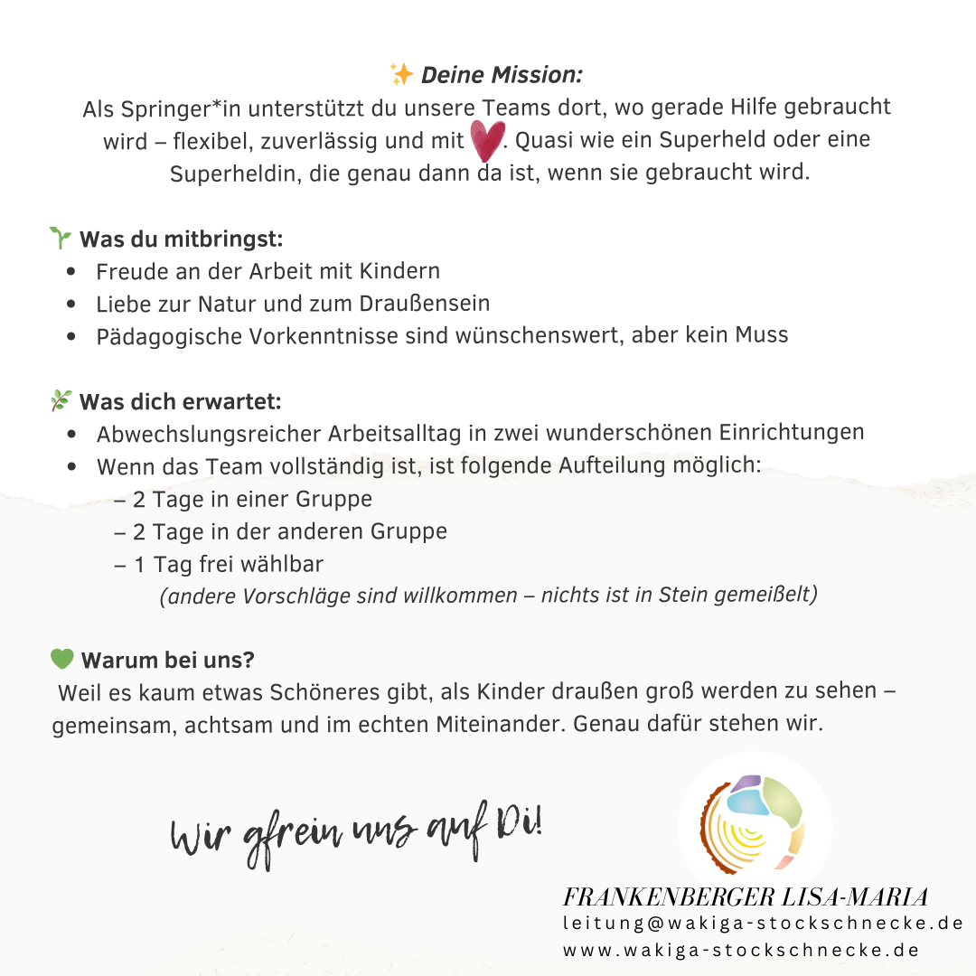 Unsere beiden Waldkindergärten sind solche Orte. Mitten im Wald, getragen vom Rhythmus der Natur, begleiten wir Kinder auf ihrem ganz eigenen Weg. Hier vergeht Zeit anders. Schritte werden langsamer, Atemzüge tiefer, Begegnungen echter.